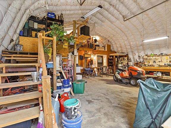 This Unique property offers two homes. One with 2 bedrooms 1 bath which is presently rented. The second one is inside the large metal building on second tract of land. Inside you will find a one bedroom with master bath walk in closets. Livingroom, Kitchen with pantry. Hardwood and tile. Large garage with a full bath also with this set up you have the ability to expand living quarters to accomidate an upstairs for additional bedrooms. (presently used as open loft to garage) Garage area has ample room for workshop and parking. All sitting on 3 acres.