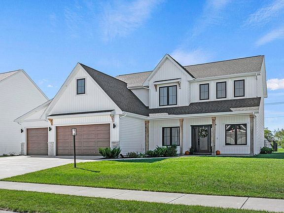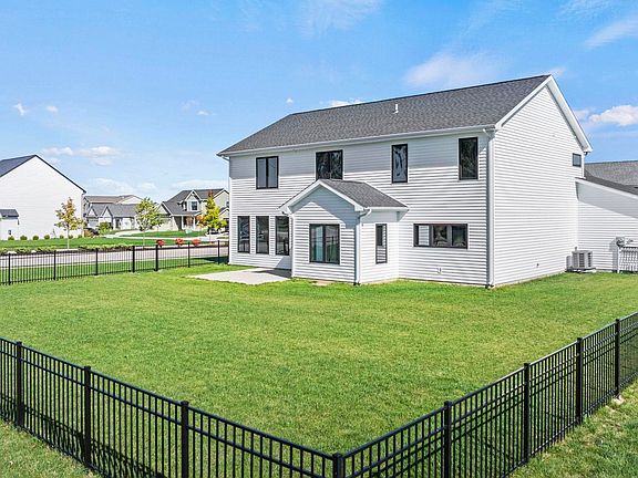 This modern farmhouse was completely custom built in 2021. The amount of detail in this home is something you have to see in person! The custom floor plan features 4 bedrooms, 2.5 bathrooms and just over 2,800 square feet and located in Southwest Allen County School District. Located on a corner lot, this home has a newer rod iron fenced-in backyard. Once inside, you will start to notice all of the upgrades and thought that went into this house. The stunning chandelier at the entrance invites you into the home. Walking into the living room, the slate double-sided smart fireplace is hard to miss, which is perfect for Indiana Fall & Winter. The large Anderson windows have smart blinds that can be accessed from your phone. The kitchen features Quartz countertops, an oversized kitchen island with storage, floor to ceiling cabinets, and a large walk-in pantry. The black stainless-steel appliances are all included. The double wall oven and the 36" gas range are both custom features that truly make this kitchen stand out. The three-car garage has been extended to fit trucks & SUVs. Upstairs you will find all four bedrooms along with the laundry room, with built-in cabinetry. The owner's suite is breathtaking and is one of the largest you will find in SWAC. It features dual vanity cultured marble sinks, slate tile, a jetted tub and a floor to ceiling tiled walk-in shower. And if that's not enough, it has an attached walk-in closet that is large enough to fit all of your belongings! This home truly has it all.