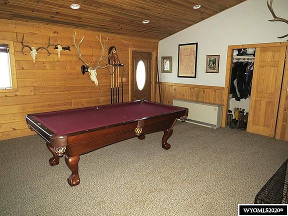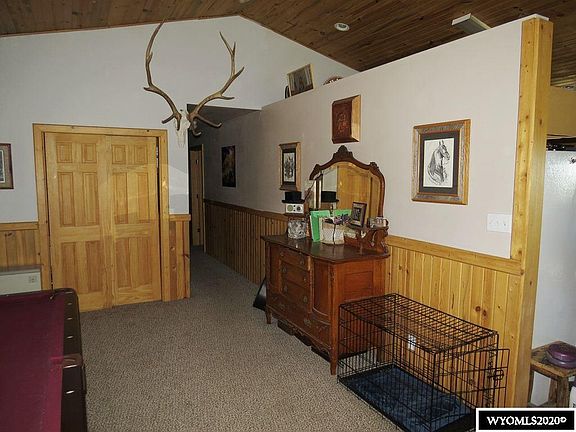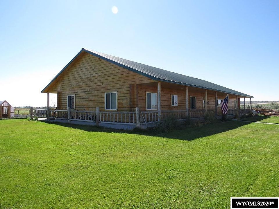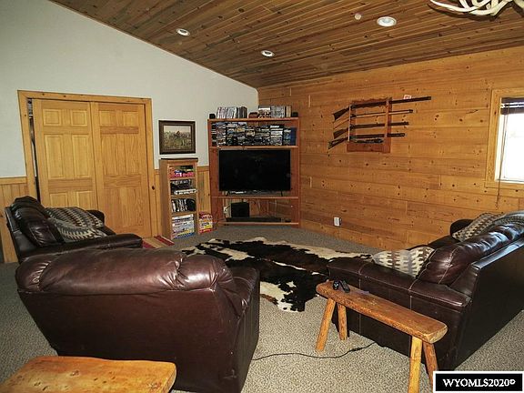 You'll love this spacious 2.560 square foot, engineered double tongue & groove, ranch style log home. Wide open interior with a 570 s.f. living room that opens into the dining & kitchen areas. Vaulted ceilings, breakfast bar, sliding glass patio doors and a river rock wood stove feature enhance the Wyoming atmosphere. Owner suite is 13' by 14' with custom tiled walk -in shower. Three additional bedrooms plus a study and hobby room.