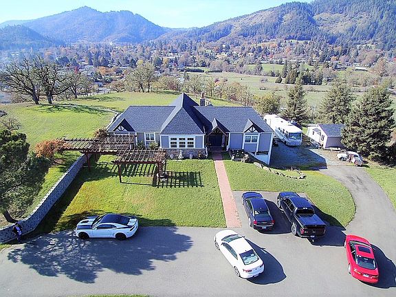 Beyond The Ordinary!!! Live in style at this Custom Built 3-bed 2.5 Bth 3390-SF home on 5.26 acres in Myrtle Creek. You'll enjoy an impressive living room with Vaulted Exposed Beam built-in bookcases, wood-burning fireplace for ambiance, tasteful dining room. Master Suite Features a Large WIC, Jetted Tub, Separate Shower, Double Sinks. Amazing Views of the surrounding Valley. Paved Circle Drive, large back covered Patio off Master.