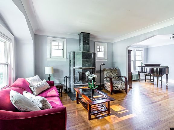 You will fall in love with the old house charm of this spacious home! Wonderful curb appeal and great original architectural details throughout. The Tulikivi soapstone fireplace is perfect for chilly autumn days! Updated kitchen with granite counter tops and plenty of storage. Built-in cabinets. Tile and wood floors throughout. Amazing finished basement with endless potential. Oversized 2 car garage. Walking distance to restaurants and shopping. Located in award winning Niskayuna School District!
