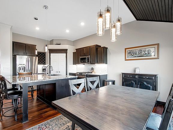 You won’t want to miss seeing this fabulous, one owner home! Nestled on a quiet lot at the end of the street, this ranch plan home with zero step entry features split bedroom plan and main floor laundry. Walk into beautiful hardwood floors on the main level, with large open floor plan connecting the living room, kitchen and dining space. Off the kitchen is sun room and large covered patio. Main floor master features bedroom with his and her sinks and custom built shower. Basement features expansive rec room with finished third bedroom, third bathroom and is ready for a potential 4th bedroom to be finished. There is an inset all setup for plumbing to add a custom wetbar in the rec room. All appliances are stainless steel and remain with the home, including the washer / dryer! Lawn has been fully landscaped and irrigated, with walkways around and up to the home, as well as high-rise planting beds. The 3-car garage is sheet rocked and insulated, with an extra large 3rd bay and includes hose bib set up. Home has been upgraded with many features, including wrought iron fencing, Anderson brand windows, and energy efficient HVAC system! Why build new when you can buy this??