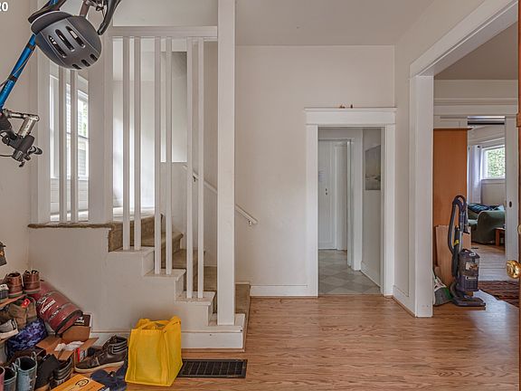 Classic Portland home steps from Hawthorne w/shops, restaurants, theaters & public transit. Orig. character & charm intact.Moldings, french doors, tall ceilings & wood windows. Fir flrs under carpet & vinyl(buyer to verify).Kit w/solid wood cabs & lrg eating area. Attic is 4th bdrm or flex space. Lrg covered front & back porches w/fnced yard & long driveway for off street parking etc. House needs some updating, but has lots of space & great potential! Sold"as is".