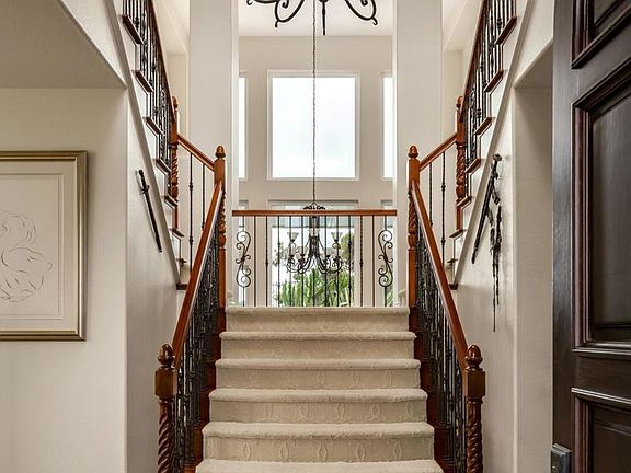 Stunning Aviara lagoon-view home with 5 bedrooms, 4.5 baths in the prestigious gated Bella Lago community. This exquisite estate on a premier lot offers breathtaking water views. The semi-custom home features an attached casita with a private entrance, perfect for guests, multigenerational living, or a home office. A newly installed 18 KW solar system significantly reduces energy costs. The estate's elegant design includes rich hardwood floors, dramatic high ceilings, and a grand foyer with a dual staircase. The remodeled kitchen is a chef’s dream, featuring stainless steel appliances, a Sub-Zero refrigerator, Brizo faucets/pot filler, two insinkerstor evolution excel disposals, rare Naica waterfall countertops, Café dishwasher, a walk-in pantry, and a spacious island. The family room, with its remodeled fireplace and first-floor wine cellar, flows seamlessly from the kitchen. The dining room includes an automatic sunscreen for added comfort. Upstairs, the master suite offers a private retreat with an expansive deck overlooking the lagoon. The backyard features a custom spa and waterfall, creating a tranquil oasis. The lush lawn is perfect for entertaining or relaxing in serene surroundings. Located close to award-winning Aviara schools, multiple grocery stores, the famous Ember & Rye restaurant by Chef Richard Blais, and the Arnold Palmer-designed Aviara Golf Club, this estate embodies luxury living. Enjoy the nearby Batiquitos Lagoon's outdoor recreational trails and experience luxury living in your private resort oasis in the heart of Aviara.