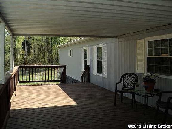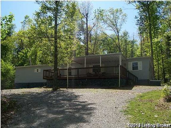 Fully remodeled and furnished 3 BR, 1 BA mobile home on 3.923 acres at Rough River!! Short distance to lake and boat ramp. NEW furniture, roof, windows, mini-blinds, curtains! Large covered front porch to sit and relax. Great property for hunting deer and/or turkey! Or, you can just on the rear deck and watch them. Very nice property for retirement or vacation home. With everything in place, including furniture, furnishings and all appliances, all you have to do is add your own personal touches! Sellers are motivated and want this property SOLD! Agent is related to seller.