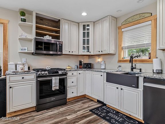 Nestled on 3 private acres sits this meticulously maintained custom 3 year old chalet styled cape that offers the perfect blend of country living with modern amenities. The eat-in kitchen offers timeless granite, plentiful custom cabinetry, SS appliances (including a gas stove) and an island with seating. The kitchen seamlessly flows into the dining and family room creating an ideal space for entertaining. The 1st floor bedroom full bath & laundry allow for comfortable 1st floor living. Upstairs offers functional loft space and a tremendous primary BR with en suite and W/I closet. Efficient foam insulation. The basement offers bilco doors & has been sheetrocked. Enjoy the peaceful surroundings on the composite deck. 32X32 metal pole barn. Minutes to Thacher Park, Thompsons & Warner Lake.