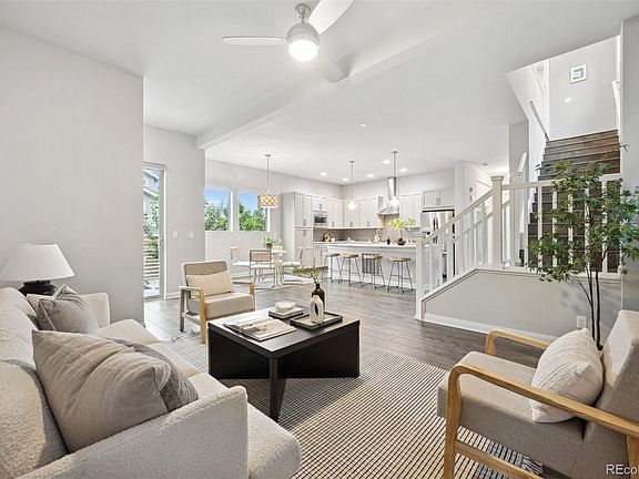 Nestled on a corner lot and fronting to open space along the Clear Creek Trail and mountain sourced Clear Creek Stream, this Energy Star Certified David Weekly home is the contemporary charmer for which you've been searching. Step inside to clean lines and luxury vinyl plank flooring throughout the entire first and second floors. The freshly painted sunlit office with French doors is the perfect work from home space. The gourmet kitchen is equipped with upgraded cabinetry and stainless-steel appliances. A large quartz island serves as the touch point between the dining space and the professionally landscaped intimate side yard with an oversized patio. Sliding glass doors bring the outdoors in and extend the living space, al fresco dining was never so compelling! On the second level, the primary retreat is set apart from two additional good-sized bedrooms, providing a practical yet stylish floor plan, along with a convenient upstairs laundry. The cares of the day fade away in your spacious ensuite bath with a spa inspired soaking tub, quartz surfaces, and shower. The walk-in closet seeks to satisfy even the most discerning fashionistas with floor to ceiling custom built-ins.Unwind with the newly finished lower level, offering substantial flex space with a fourth bedroom set apart by a charming sliding door. Newly refreshed throughout and squeaky clean, this move-in ready home is just 10 minutes from Downtown Denver. The xeriscaped yard means you’ll have more time to explore the Clear Creek Trail right outside your door! Goodbye yardwork, hello adventure! Midtown, once a hidden gem, has emerged as a premier Denver community valuing neighborly connection and the unique combination of proximity to nature and urban life. The bonds of friendship grow effortlessly at the community garden, clubhouse, parks, dog parks, and craft brewery. Quality education options within Midtown include the Midtown Montessori and Trailside K-8 elementary.