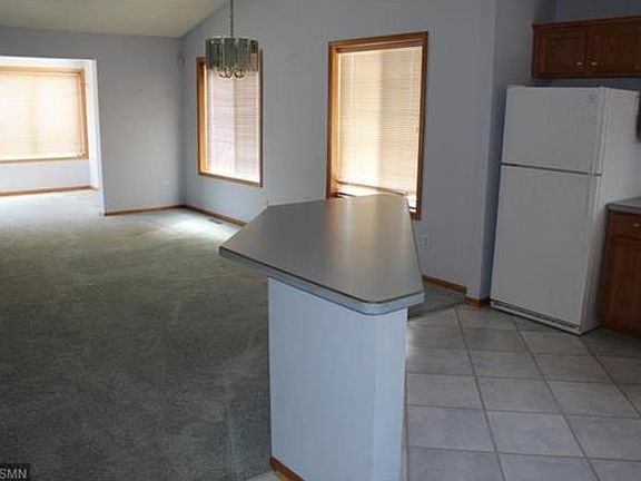 One level living town home in Elk River, Bright and Open, Sun room with pation doors to concrete patio, Entry Patio Porch, Corner Stone fireplace, Large master suite and private bathroom with over sized walk in closet. All closets have wire raking. Corner kitchen sink, center island with breakfast bar, vaulted ceilings, ceiling fans, built in hutch with lighting. Two car garage with finished flooring. Flexible closing