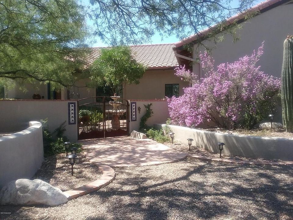 Gorgeous Ranch estate sitting on over 5 private and peaceful acres featuring over 20 Saguaro's numerous Mesquite trees, 8 panel solid wood doors throughout.Views from all windows, high ceilings, dual evap, air, heat and water heaters. Beamed ceilings, clerestory windows, walk-in pantry, wet bar and wine cooler.4th BD/den has a walk-in closet and the Master BD has two separate walk-in closets, area for a desk and a cedar closet.Lavish Master Bath has a Jacuzzi tub, walk-in shower and dual sinks. All bedrooms are large.Saltillo tile with seat walls and fountain at the entrance and ceiling fans, outdoor fp, more seat walls and lights on the back porch. Separate BBQ area two irrigation systems and auto fill pool and spa. Five stall barn with auto water, electricity, fly spray system, tack rm.