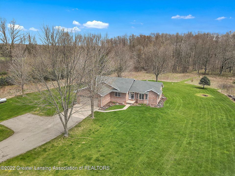 Unbelievable opportunity with this updated all brick ranch on 9 acres in the highly desirable Grand Ledge School district! Completely move-in ready, this brick ranch features a nice open floor plan with cathedral ceilings, lots of windows to allow for natural light, and open to the kitchen and eat-in dining areas. The kitchen is perfectly laid out with lots of cabinet space, island, and two areas perfect for dining space and gatherings. The primary bedroom is very spacious and has an attached bathroom with double sinks, walk in shower, and large walk in closet. There are two additional bedrooms and a second full bath on the main level. The laundry room is conveniently tucked away in the back of the home. The lower level is a perfect space, and allows for so much more living space and bedroom space if needed! The property is a dream with 9 acres of woods, trails, and a perfect amount of yard. The deck is solid and newly stained. Updates include roof (13), water heater (14), sump pump and drain system (18), water softener (17), furnace (15), garage door (19), new gutters (21), sinks, faucets, and all new lighting in 2021. This home has so much privacy, and the perfect mix of woods and yard, all in the highly desirable Grand Ledge School District! Hurry to schedule a tour today!