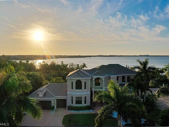 Elevate your lifestyle with this stunning, gated waterfront estate. This custom home offers unobstructed deep-water access to the Gulf and no bridges or locks, ensuring seamless navigation for your boat. Enjoy breathtaking sunset views!