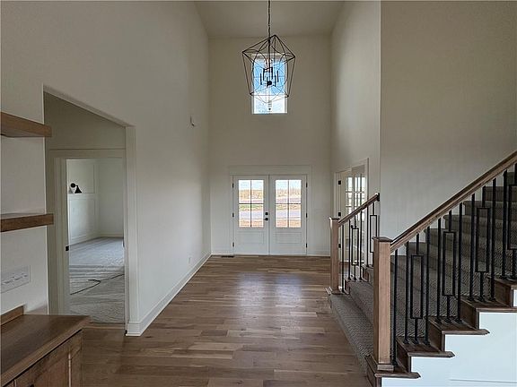 Remarkable 1.5 Story floorplan by McBee Custom Homes sits high with greenspace behind in Liberty School District's Prairie Field Subdivision! "The Gallatin" features Great Room with vaulted ceilings, perfectly open to kitchen with island for all to gather. Impressive walk-in pantry for plenty of storage space. Drop zone off the garage and laundry room just steps away. Main level primary suite with free-standing tub and walk-in shower. Perfect house to grow into with 3 bedrooms up and 2 bathrooms, or use a bedroom as loft space or office. Additional office on main level, or use as playroom, dining area, music room, library, the options are endless. LARGE walk-out basement with tons of natural light, one bedroom and one bathroom finished. Stunning sunrise and sunset views from your own backyard. Garage will easily fit a truck!! Come take a look!