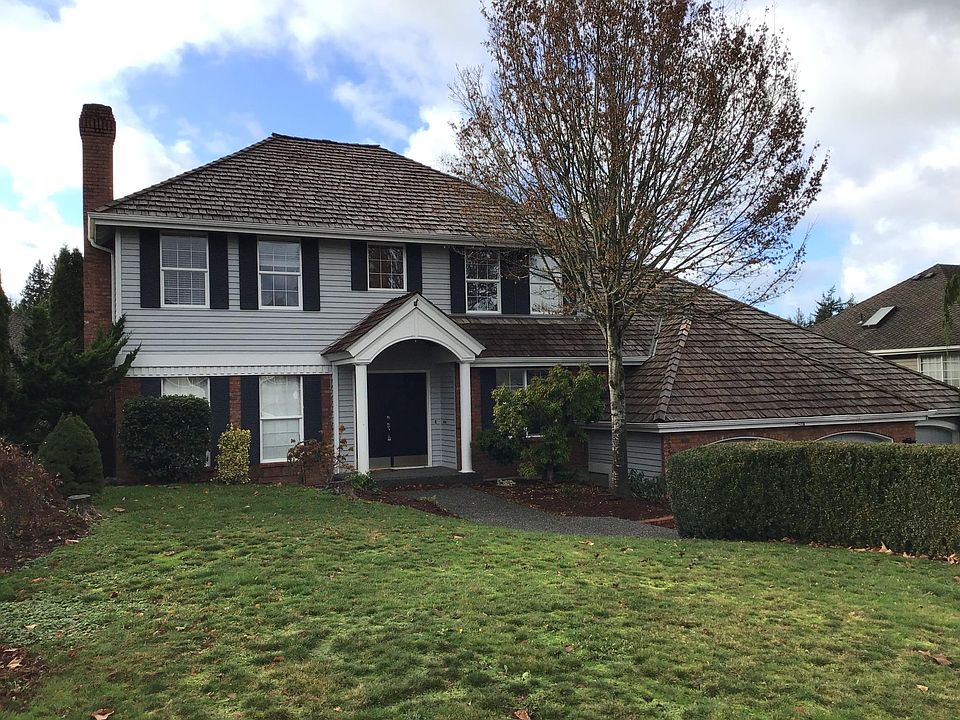 Large, beautiful home with newly finished hardwood floors, new carpets and interior paint. The upper level of the home has four bedrooms and two baths, including a large master bedroom, master bath (with skylights!) and walk-in closet. The main level develops into a large kitchen, open to the living area, complete with a fireplace, large windows and door onto the back deck. The dining room adjoins the entry room, which highlights the home's second fireplace. The house also features a finished "mother-in-law" unit downstairs with a second, large kitchen, living area, bedroom, bathroom, laundry room and office. This great space has privacy from the rest of house, as well as an optional separate entrance, The home has two offices, each with plenty of electrical outlets and dedicated coax cable outlets. Wonderful neighborhood, easy commutes to Boeing, Seattle and Eastside. One of the best school districts in the state. Three car garage, plenty of storage space and a fenced backyard. Cat okay. Small dog okay with additional deposit. No smoking. One year lease, longer terms available. Tenant pays all utilities. Landlord provides yard maintenance.