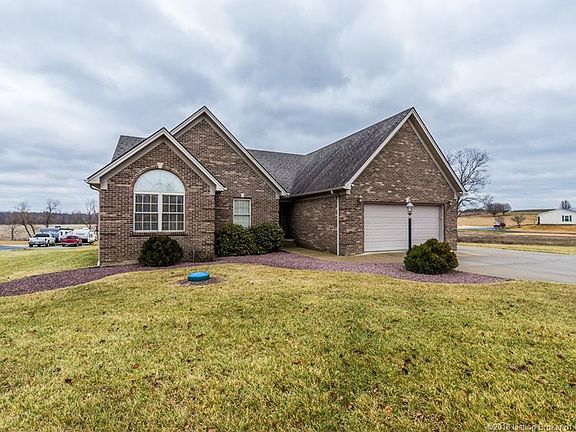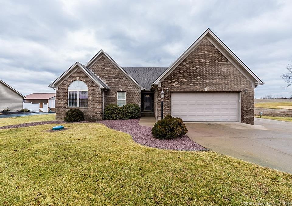 USDA FINANCING AVAILABLE. BEAUTIFUL CUSTOM BUILT 3 bedroom, 2 and a half bath RANCH home sitting on 1 acre. This home has the feel of COUNTRY LIVING but just minutes from I-65. With over 3000 finished square feet, an open floor plan and white kitchen cabinets this home is perfect for entertaining. First floor, garage, and basement office have been freshly painted. Finished basement boasts an office, huge game room with bar, electric fireplace and 40 inch tv, exercise room, and 2 large storage rooms. Insulated, covered back porch has a hot tub and wall mounted television for year round use. Alarm system, security cameras with monitor, 6 wall mounted TVs, and surround sound speakers stay. Extended drive-way with 30 AMP RV electric hook-up and RV sewer dump connections on property. Fenced backyard with newer above ground pool. New garage door and springs that can be controlled by your smart phone. 10 x 12 shed with electric stays with home. Call/text me today for your private showing!