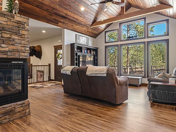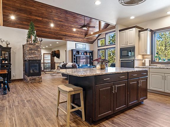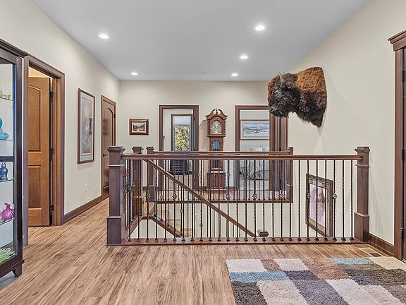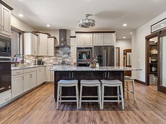 Take a look at this stunning property! The beautiful gourmet kitchen offers a walk-in pantry, granite countertops and plenty of cabinet space. The master suite is complete with a 12x10 walk-in closet with its own washer and dryer hook ups as well as a built in vanity and the master bathroom has its own custom tile curb-less shower. Other main floor features include a mud room, a second bedroom and bathroom, a dedicated office, tongue and groove ceiling, solid wood doors, and more. The living room also showcases a gorgeous 3-sided stacked-stone fireplace and the floor to ceiling windows allow for plenty of natural light. The finished basement is complete with a junior suite with its own bathroom and walk-in closet, a fourth bedroom, large family room with walk-out access to the back yard, another bathroom, theater room and the opportunity for you to put in your own wet bar plus LOTS of storage space. The covered back deck boasts a tongue and groove ceiling, composite decking, iron railing, and even has a dedicated grilling space! This home is complete with an attached 3-car heated and finished garage that will accommodate any vehicle, while the 24x24 shop is perfect for extra toys, projects, or storage! CHICKENS are allowed in this subdivision! Don't miss out on this stunning property-this one truly has too much to list!