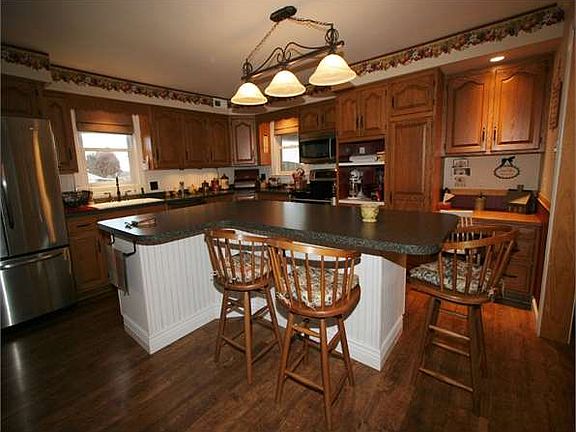Completely Renovated Farmhouse Work's all done in this charming 3 bdrm farm house, 2 full baths, "Hess" oak ktichen w/large island, sep DR & LR, durable laminate floors, new windows, new heat pump + EBB heat. Love that 4-car garage (with pit), 3-stall barn with elec, fenced for privacy. Greencastle schools. Convenient location.