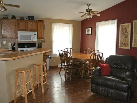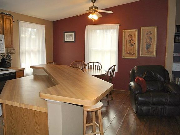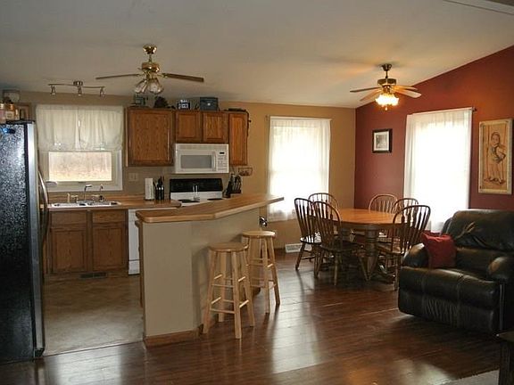 What a lovely home on a quiet country road! You will love the open Living Room, Kitchen and Dining area that feature cathedral ceilings, large kitchen island with room for plenty of room for 3 to 4 stools and GREAT counter work space! Master bedroom has nice bathroom plus a great walk-in closet. Both master bedroom and second bedroom are good size! The attached garage is finished and has a 16' x 8' garage door plus there is an additional 12 x 24 workshop that could be a 3rd garage bay. There is a heated office/man cave and 1/2 bath that are just off the garage. All of this is on an extra large 1.5 acre lot for private bonfire, room for a HUGE garden, volley ball game and lots of family fun. Don't miss your chance for this great home!!