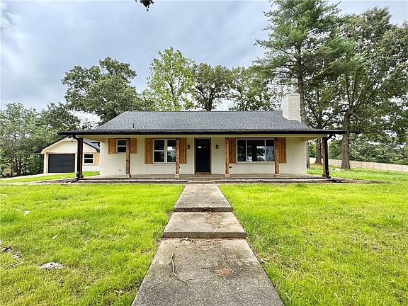 Completely renovated beauty! Bentonville Schools AND a Bentonville address! This home on 7.85 acres boasts stunning mature trees, rolling hills & breathtaking views. Relax on the large covered front porch or enjoy the spacious living room with a brick linear electric fireplace, abundant windows & LVP floors. Kitchen features a stainless steel electric range, modern white cabinets, quartz countertops, ample counter space, pantry & cozy eat-in area. The primary bedroom includes an ensuite bathroom with a tiled walk in shower, updated vanity, storage, & a walk-in closet. Insulated detached garage offers extensive storage & workshop. Tornado shelter out back for piece of mind. Accessible via paved gated entrance off Hendrix Rd. Fully paved all the way to the house! 3.4 Miles to XNA Airport! Very close to the new Arkansas XNA Connector (Job 090069) off of Hwy 612 - Easy access to all of NWA! NEW roof and remodel.