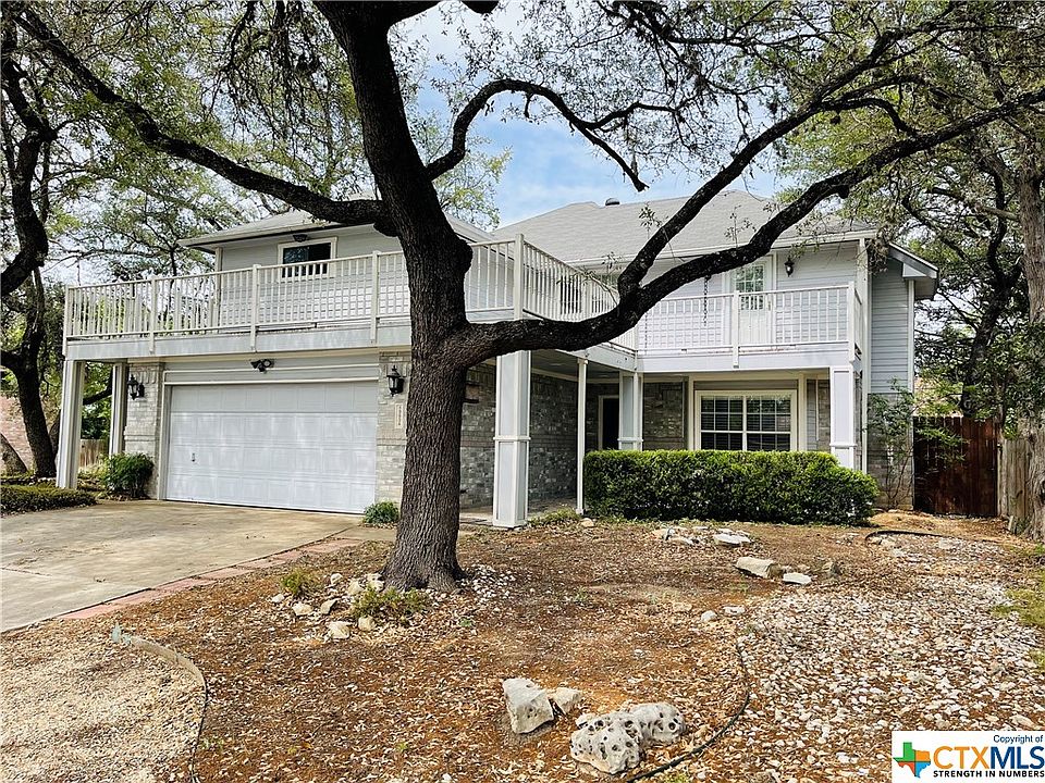 Beautiful corner-lot home that has been meticulously maintained and updated. With two large living areas, one upstairs and one downstairs, you have room for the whole family. The kitchen has beautiful cabinets with plenty of storage and an island table. There is a half bath and study/office on the first floor. An ornate and large spiral staircase take you upstairs to the 3 bedrooms and 2 baths. Both bathrooms have all been updated and the bedrooms are large. Have coffee out on the upper balcony deck, which is a rare find! On the balcony you're surrounded by large trees and shade and there is an exterior staircase down to the side yard. Both side and back yards are great for entertaining. There is a community pool, but you will have to purchase a membership. This is home is located near the Forum for shopping and restaurants, Randolph Air Force base and quick access to 1604 and I-35.