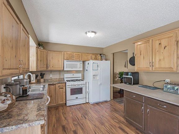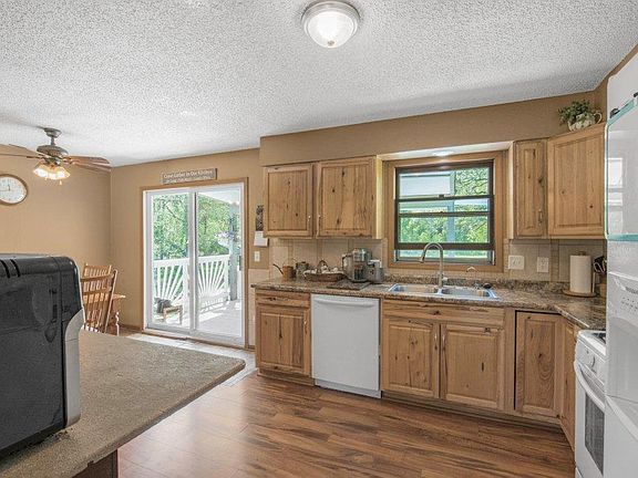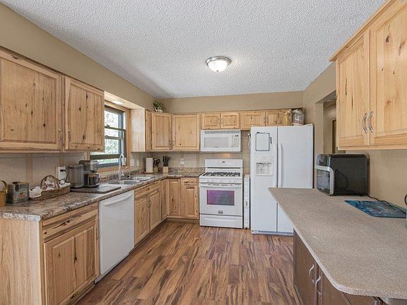 Check out this wonderful split on 3.9 acres. Upper level has a large living room, kitchen with newer cabinets and counters, appliances are 8 years old, fresh paint throughout, recently replaced flooring on upper level, large 11x26 primary bedroom with multiple closets, updated bathroom with new jetted tub and guest bedroom. Downstairs features a large family room with wood burning fireplace that has a chimilator, 2 large bedrooms, a 3/4 bathroom and oversized laundry room with mechanicals and storage and convenient access to the attached 2 car garage. Many updates, check out the feature sheet. Check out all of the wildlife that comes daily to visit and enjoy close access to Little Elk Lake, lake front restaurant and the Sherburne Wildlife Refuge. This wonderfully maintained home offers a private oasis, custom fire pit swings / seating, custom raised gardens inside of a fenced enclosure, playset and close enough for commuting to the cities.