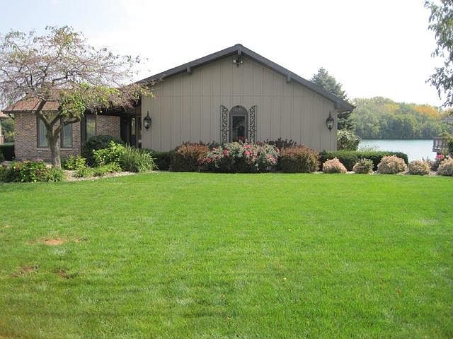 Lakefront Ranch w/ private beach on 43-acre spring fed lake located in "The Lake" subdivision. Completely remodeled in 2018/2019. Attached 3 season screened-in deck providing breathtaking views of the lake. Updates in 2017 alone include: complete tear off roof, gutter cover, flashing, vents, 3 new skylights, new well pump, water softener, breaker panel & breakers.Composite balcony off main level master & second bedroom, brick wall gas fireplace in lower level family room. Expansive area above garage w/ mechanical stairs & complete flooring for easy maneuvering & storage. Lennox high-efficiency Furnace 2009, Lennox Air conditioner in 2013.