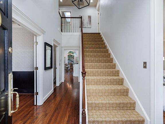 Step into the elegance of this Lake Oswego home in the heart of Westlake within the coveted Westbrooke neighborhood. Rich hardwoods, wainscoting, and a two story entry welcome you with a direct line of sight to the backyards cascading water feature! The graceful formal living room with a stone fireplace leads into a formal dining room with windows to the outside. Glass paned french doors lead into a main floor den or office with a wall of bookcases, custom display cabinetry, and wet bar. Traditional meets fresh modern in the kitchen with an open great room concept including a generous sized entertaining island, exquisite white cabinetry, granite countertops, a deep farm sink, stainless steel Dacor range/ovens, Miele built-in dishwasher, Sub-Zero refrigerator, and wine cooler! Relax and enjoy a meal in the eating nook while watching and listening to the gentle babble of the water feature right outside, or curl up in a blanket next to the fire in the family room. All the bedrooms upstairs are thoughtfully designed for privacy with no shared walls. The sunbathed primary suite is spacious and offers its own sitting room! The lovely primary bath includes a soaking tub, shower, and a generous walk-in closet. Two additional bedrooms share a full bath with heated tile floors. A laundry area separates the bedrooms from the 4th bedroom suite, which could be used for guest quarters or an Au Pair suite, with large closets and custom built-ins for storage, and a full bathroom with a walk-in shower. The backyard oasis is purely stunning with mature plantings, extensive uplighting on exquisite trees, a graceful water feature meandering down into a pond, and a covered outdoor family room/eating area with a Lynx grill for entertaining. Enjoy outstanding LO schools, nearby Westlake Park, and Kruse Village where you will find dining, shopping, yoga, and a seasonal farmers market from Parsons farm! Come home and enjoy!