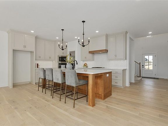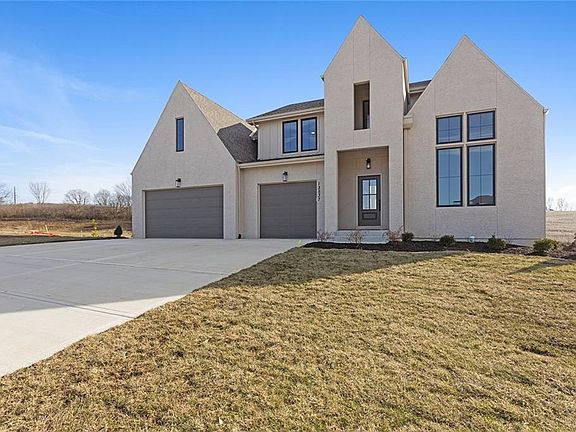 A brand new look to the Latitude II by Fish Creek Homes! This home has a high-end, elegant look and feel from the European style peaks of the front elevation to the high ceilings throughout the whole home. Walk into the grand entrance with a dedicated den (don't waste a bedroom on an office), then on to the open and airy kitchen, dining and living area. Kitchen has plenty of cabinetry plus a beautiful oven hood, a coffee nook, big walk-in pantry and large island with seating! The dining area and living room look to the backyard and have BIG windows letting in the natural light. Living room has 2-story ceilings that open to the loft on the second floor. Primary bedroom is conveniently located on the main floor and perhaps the best feature is the laundry room connected to the primary bedroom's walk-in closet. Head upstairs to an open loft and the remaining three bedrooms, one with a private bathroom and two with a shared, jack-and-jill bathroom. Need additional space or perhaps an in-laws quarters - the unfinished, WALKOUT basement has the perfect set up, finish it out to add a rec room, 4th full bathroom and potentially two more bedrooms, to give you a total of SIX bedrooms. Updates after contract include hardwood floors, deck stairs, painting, french doors. This home is all that you need and more! Completion date estimated to be Fall 2024. Come see this home in Prairie Field, in Liberty Schools.