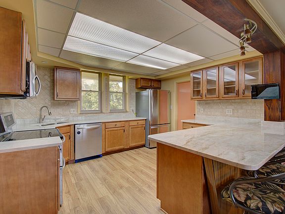 - Features: Breakfast Bar, Eat-in Kitchen, Wood Cabinets, See Remarks, Plank Flooring