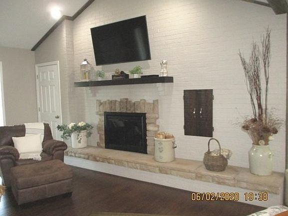 Improvements are TNTM. Seller has re-done and/or remodeled nearly everything in & out of home. Recent gutters, soffit, windows, siding, water heater, garage door, new fireplace gas insert, new sewer lift system....appls, disposal, floor coverings, (Kit, BRs, LR & DR)...recent thermostat & garage door opener...barn door for Laundry Room...new siding rear door with lifetime warranty... all 3 BAs have recent vanities, lights, faucets & plumbing. LP tank for fireplace is owned by seller. Three spacious BRs, eat-in kitchen+island bar+ formal dining room. Fireplace is brick wall with upscale gas insert. Recent island bar in kitchen w/stained butcher block top. Stainless steel under-mount sink. Newly added patio & landscaping. Privacy fenced yard & 24x30 metal outbldg w/electric & concrete floor.