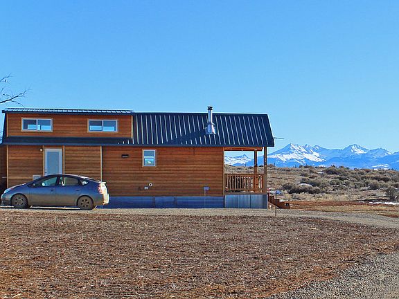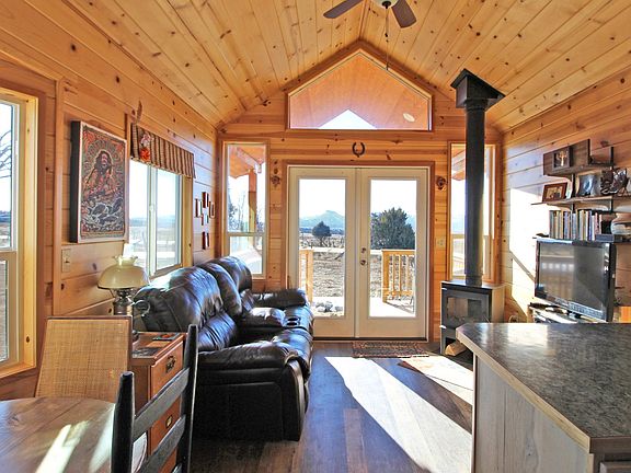 Mountain View Log Tiny Home For Sale in Montezuma County! Awesome views of Mesa Verde, the La Platas, and Sleeping Ute Mountain from this comfortable, well-maintained tiny home. The living area offers many windows to let the beautiful light in, and has plenty of room for a TV and couch. The 200 sq ft loft is in addition to the 400 square foot main level and makes an excellent 2nd bedroom. Stay nice and cozy when it's cold with both wood heat and built in propane heat. Home is thoughtfully designed and custom built by Rich's Portable Cabins, of La Grande, Oregon. Sale includes 40' storage container which offers great locked storage for bikes, tools, etc. Great central location only 15 minutes to Cortez, Dolores or Mancos.
