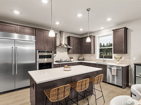 The highly sought-after Gardenia plan offers 5 bedrooms plus a spacious loft, including a versatile main-floor bedroom with a ¾ bath—ideal for guests or multi-generational living. The chef’s kitchen features a 48" counter depth built-in refrigerator and gas cooktop + walk in pantry, excellent for entertaining.  Spacious & flat south-facing backyard where you can enjoy a variety of activities.  Modern comforts include central A/C, smart home features, and EV charging. Perfectly located just minutes from The Village at Totem Lake, Redmond Town Center, and major tech hubs. Buyers must register their broker on-site at their first visit, including open houses.