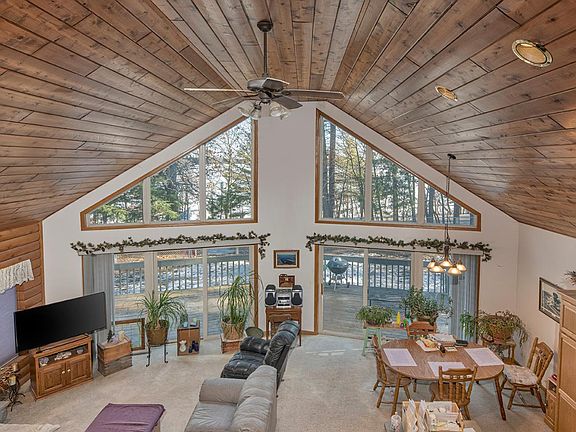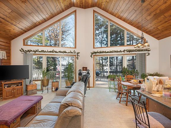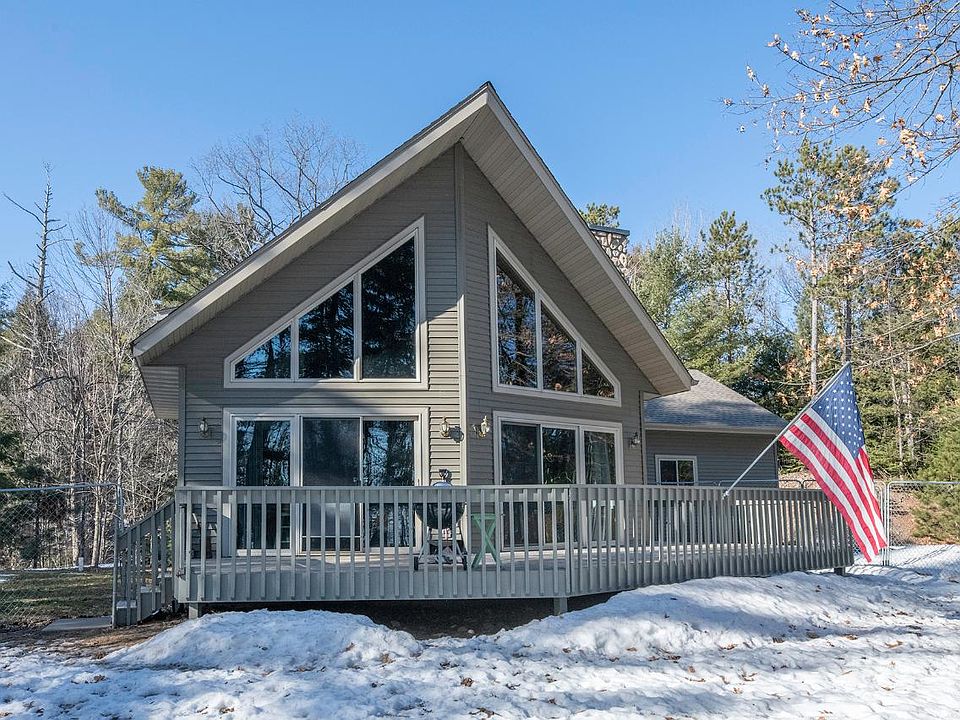Three bedroom, 2 bath home on 348 acre Spirit Lake in Three Lakes. 240 of sand swimming frontage with SE exposure. Great window system and deck provide beautiful waterfront views. Large living room featuring a gas cultured stone fireplace and wood ceilings. Spacious master bedroom and master bath with a whirlpool tub. 6 panel oak doors and trim throughout house. Full unfinished basement and attached 2 car garage round out this must see home.