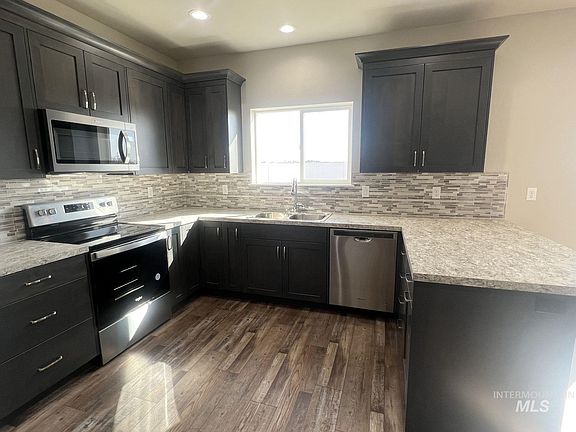 BEST LOCATION IN JEROME. Just finished final sales clean. Next to schools, walking path, parks, baseball, softball, and soccer fields. Easy commute to Twin Falls or north. 6 foot vinyl privacy fence. Automatic sprinkler system connected to the pressurized irrigation system in the front yard and stubbed to the back yard. Covered front patio. Living room main level and a separate family room upstairs. 5th bedroom is an office and doesn't have a closet but could be a bedroom or music room. 3 car garage. HVAC is an upgraded gas 96% fuel efficiency furnace and central air conditioning. Both are dual zone meaning the upstairs is controlled separately from the main level to keep the entire house at a comfortable temperature, summer and winter. Owner is the builder and licensed real estate brokerage in Idaho. Listing agents have an ownership interest. Seller can purchase buyer's current home, if needed and if local.