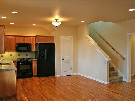 This 2-BR Foursquare cottage features hardwood great room and hall floors, tile kitchen counters w/ full backsplash, tile bathroom floors and counters. Upper level consists of a large, bright master suite w/ windows facing Cascade view. Main level bedroom connects to hall bath. Gas fireplace w/ tile surround, wood mantel. Deep walk-in pantry. Decorative features include leaded glass front door light. Covered front porch and rear stoop, patio, fenced/landscaped back yard, detached 2-car garage facing alley.