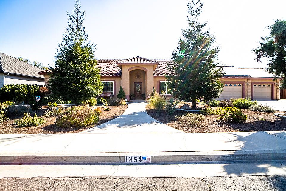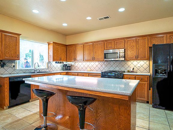 A beautiful home in excellent condition on a ½ acre. The owners have lived there since the home was built. They have taken loving care of their home. The home features 3 bedrooms, 2 baths, an office, walk-in closets and an inside laundry room. The garage also has a wash sink so cleanup is easy before coming inside. The kitchen has granite counter tops with a large island. The living room has a custom made mantle over the fireplace. The backyard has an expanded patio with a beautiful pool and pool house. Behind the pool house is your own personal orchard of plum, lemon, fuji apple, walnut and avocado trees. The bonus feature of this home is ''paid solar''. The monthly Edison bills run under $10 per month.