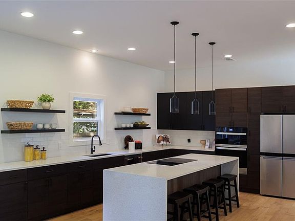 Modern styleFully fenced level backyardSprawling island with seatingOpen-concept layoutSeparate dining roomSmart whirlpool appliancesGorgeous stone countertops