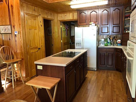 Oven, microwave, glass cook top stove in island, whirlpool side by side with ice maker, heat pump new 2017 spring, 2016 seller had anderson stablize the foundation wall next to sunroom and boat dock to remain per coe, house has cherry kitchen cabinets with island storage, oak hardwood floors, all pine wood walls & ceilings, All appliances and 2 dehumidifiers to remain.