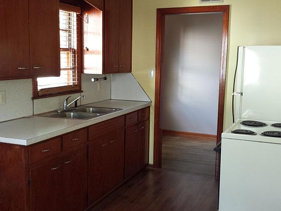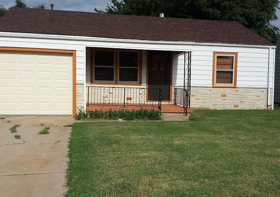 No smoking or pets. Cute conveniently located near Newman University/Friends University Kellogg and I-235. New bath plumbing heat & AC unit. Cover front porch one-car attached garage patio with privacy fence and shed. Hardwood floors lots of kitchen storage includes oven stove and fridge with washer/dryer hook ups. Tenant responsible for all utilities trash and yard. Tenant responsible for utilities and yard