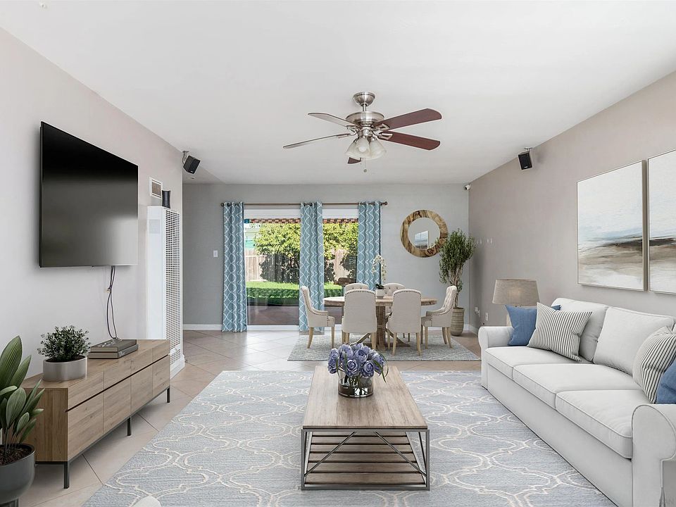 Don’t miss out on this incredible sprawling 3 bed, 2 bath single-story home offering upgrades throughout and a covered front porch providing a gracious space to enjoy the outdoors year-round. Step inside to discover a spacious interior and a gorgeous updated kitchen which is equipped with dark wood cabinets, stainless steel appliances, including a wine fridge, granite countertops, stacked stone style backsplash, and looks out into the dining area with sliding doors to the backyard making it ideal for indoor-outdoor living. Down the hall are all 3 bedrooms including the large primary suite with ensuite bathroom. The generously sized secondary bedrooms share the hall bath. The enormous grassy backyard with a lemon tree and covered patio is a perfect place to sit and relax or entertain family and friends. This is a rare find, hurry!