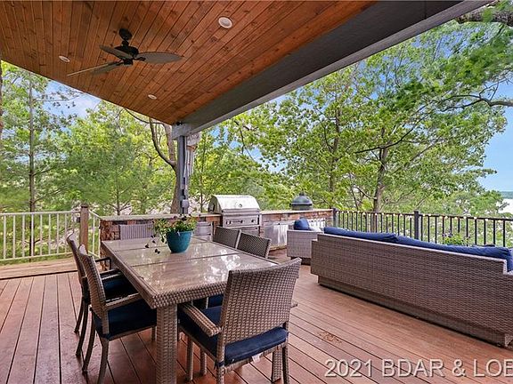 An absolute showstopper! Completely remodeled & fully furnished home w/ million $ view but surrounded by trees so you have shaded afternoons. Completely new kitchen w/ kitchen-maid cabinets, granite counters & LG appliances. New flooring & fresh paint throughout entire home. Each bathroom remodeled w/ a plank style tile, tile showers & new vanities/fixtures/toilets. Vaulted living room w/ large rock accent wood-burning FP & opens up to the four seasons room/office w/ an AMAZING view of the Osage 28 MM. Main level deck (where you'll spend most of your time) is the perfect entertainer w/ granite outdoor kitchen tops, Sedona grill & green egg, Tigerwood undermount decking & also a covered area to enjoy even when raining. Lower level family room is a great space for TV watching, playing pool or stepping out to the deck & sitting in the hot tub! Home features 6 bedrooms so you have room to sleep plenty! Nightly rentals are allowed if desired. Concrete dock w/ 2 jet ski's + lift is INCLUDED!