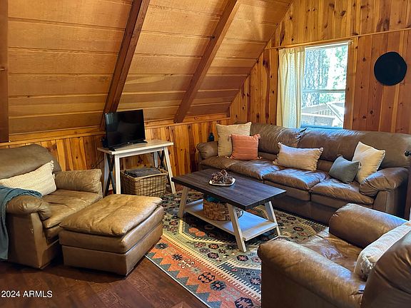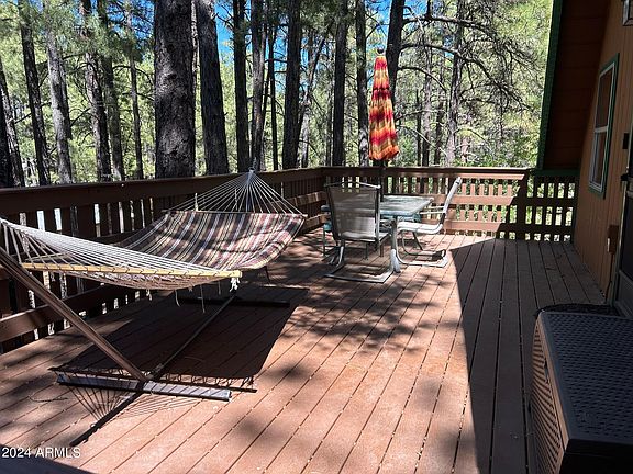 Escape the heat and enjoy this absolutely stunning cabin in the woods. Open concept kitchen w/updated finishes and breakfast bar. Spacious great room has a wood burning stove and space to work. Separate shed with laundry. Enjoy two large decks with unobstructed views of the Coconino National Forest. Dual water storage tanks for off-Season water supply.