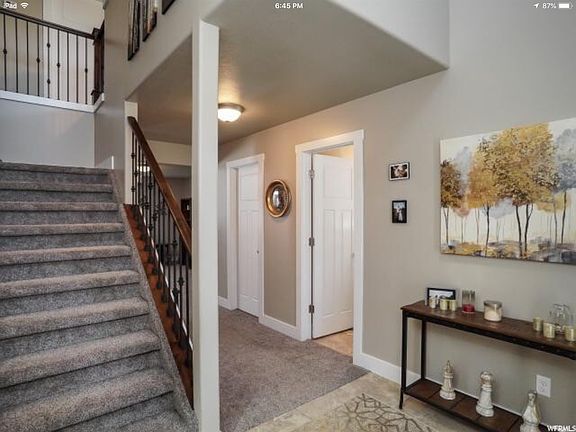 Irresistible home featuring welcoming front porch, neutral paint colors, kitchen with staggered cabinets / granite counters / SS appliances, brushed nickle light fixtures, wrought-iron balusters, wainscoting, landing area at top of stairs, master retreat with tile shower / granite counters / walk-in closet, laundry on upper level. Huge garage, RV parking and patio, fully fenced yard. Call to show / access code.