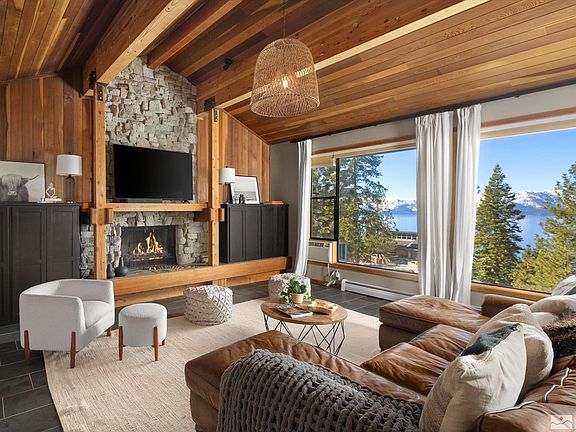 Imagine waking up to sweeping Lake Tahoe views in this stunning four-bedroom, three-and-a-half-bath home perched atop Cave Rock. With its tax-friendly Nevada address and spectacular lake views from nearly every room, this residence is the epitome of mountain living. The open-concept floor plan upstairs is highlighted by dramatic open beam ceilings and an abundance of natural light. The well-appointed kitchen features slate flooring, granite countertops, newer appliances, and a walk-in pantry., The seamless flow to the dining and living areas creates the perfect space for entertaining, complemented by wood-wrapped windows that frame breathtaking lake views.The home’s southern exposure bathes the space in sunlight year-round, while the corner lot offers additional parking and bonus square footage potential. Plus, enjoy easy access to the nearby boat launch, additional parking, and the privacy of surrounding forest service lots.