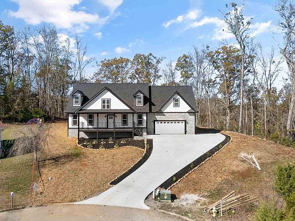 Welcome to your dream home in the heart of Sevierville! This brand-new build is ideally located just 6 minutes from Tanger Outlets and Walmart, 10 minutes from The Island, and 15 minutes from Dollywood. Enjoy the perfect combination of convenience and luxury, with breathtaking, unobstructed views of the Smoky Mountains right from your front porch. Inside, you'll find high-end finishes throughout, featuring an open floor plan with soaring ceilings in the living room that create an inviting and spacious atmosphere. The home offers 3 bedrooms on the main level, plus a large bedroom and full bathroom upstairs. The primary suite features a massive walk-in closet that's straight out of your dreams! The thoughtful design continues with a half bathroom conveniently located off the laundry room, and a two car garage with extra storage space. Out back, the concrete patio provides the perfect spot for entertaining or simply relaxing while taking in the beautiful surroundings. Sitting on over an acre of land in a peaceful cul-de-sac, this home offers a serene retreat while keeping you close to all the action Sevierville and the Smokies have to offer. Start your mornings with coffee or wind down with hot chocolate on the front porch while soaking in the views. This property is truly one of a kind—don't miss your chance to make it yours! **Garage door was virtually added when pictures were taken. Floorplan at the end of photos.