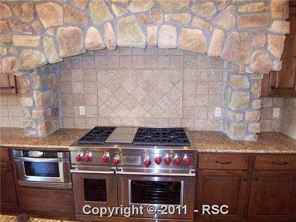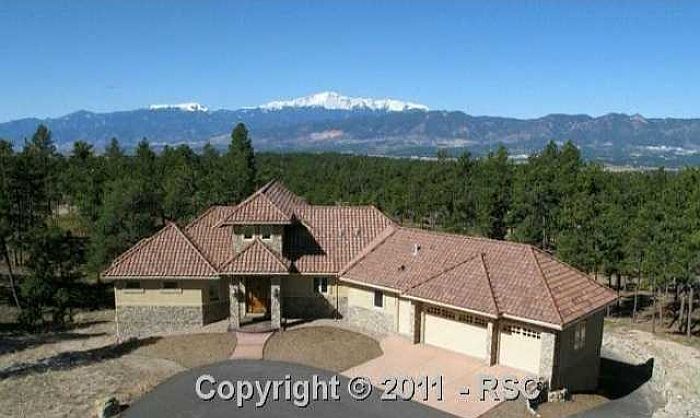 Tuscan custom ranch home is perched high on private treed cul-de-sac with stunning views of pikes peak and rolling meadows enjoy The ultimate colorado lifestyle with warm hickory flooring, beamed vaulted ceilings, hand textured walls, extensive use of stone,crown molding, built-ins, alderwood cabinets,slab granite, stainless wolf gas range, double ovens,u-line wine refrigerator & ice makerfit and finish second to none. Gourmet island kitchen with a casual dining area warmed by a stone 2-sided gas log fp.(zbl(11) - 01503224330)