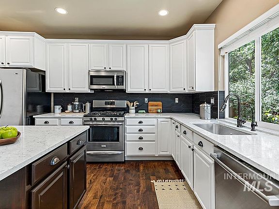 A gorgeously remodeled residence, located in a charming neighborhood within moments to shopping at The Village! This spacious Craftsman-inspired home has fabulous curb appeal that is carried indoors. The interior has a fresh Modern Farmhouse style, with black doors and accents, rich dark wood floors, and ample living area. This timeless design provides formal and casual entertaining spaces, perfect for hosting both large holiday meals and everyday leisure. A large great room design features a row of windows taking in views of the park-like backyard setting, a beautiful painted brick fireplace, and seamless transition into the kitchen and dining area. The spacious gourmet kitchen was renovated in 2020 to include brilliant marbled quartz countertops and striking black tile backsplash. Additional features of the kitchen include painted cabinetry with pull-out shelving, stainless steel appliances, reverse osmosis filtered water, walk-in pantry, and matching built-in desk nook.