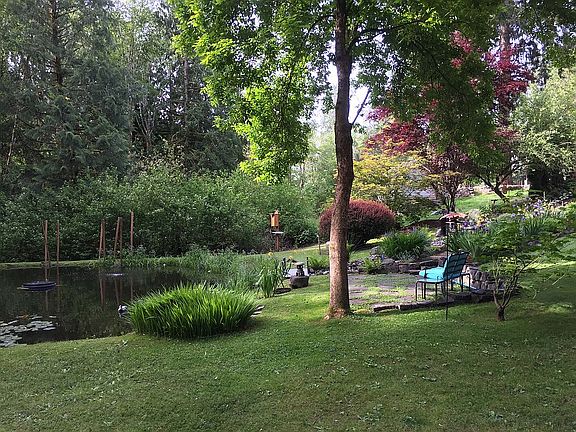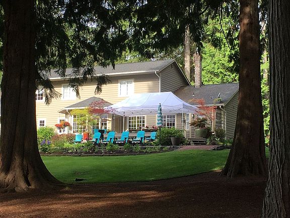 One of a kind retreat like setting on 1.78 acres with waterfall, 100' stream with 5 pools and large pond. Custom built home with new roof, granite counter tops, hardwood floors and tiled Master Shower with tile floors. Large backyard deck with extensive landscaping, 11 zone irrigation system, Invisible Dog Fence, remote electric gate opener, and large shop with storage plus 2 car attached garage. View of Burly Creek from backyard with spawning salmon. Garden shed with separate greenhouse, private well, Generac generator, and RV parking.