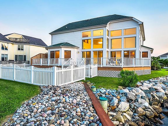 $925,000 ~MUST SEE~ Stunning Panoramic Bay Views, Breath taking sunsets~ located in Nantucket Point. This 4 bedroom , 3 1/2 bath single family home is situated on a point of land with the bay steps from your very own living room! If you want a room with a view this home is for you....CEILING TO FLOOR WINDOWS. Open dining room & kitchen w/ island, tile counter tops, large living room, gas fireplace w/tile floors. 1st floor master suite with hard wood floors, walk in closet and Jacuzzi tub. 3~second floor bedrooms with bonus game room, balcony overlooking the living room. Wrap around porch and fenced yard for entertaining while the sun sets over the bay! Deeded boat slip in Marina and community pool. NO CITY TAXES!!!!! One year HMS home warranty to Buyer.