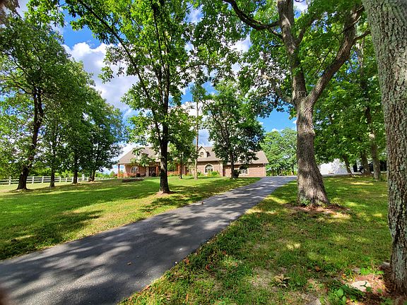 3 miles North of Ava sits this custom built brick and stone home with over 6,000 sq feet of living space. Main floor contains main kitchen and prep kitchen . Double ovens, 2 refrigerators, 2 dishwashers. Large bar with plenty of lighting. Formal dining area just off the sun room. Master suite contains 1200 square feet with jetted tub and walk in shower. Basement offers living area, kitchenette, storage, bedroom and two bonus rooms. An enclosed patio leads to yard area. Upstairs on the second floor, enjoy the third living area with two over sized walk in closets for storage. Two bedrooms and a full bath. Zoned heating and cooling for efficiency. Shop has room to park the RV along with just about anything else you can imagine. Vinyl fencing completes the park setting along with mature shade trees. Home sits on 8 acres. 54 more acres available for purchase.