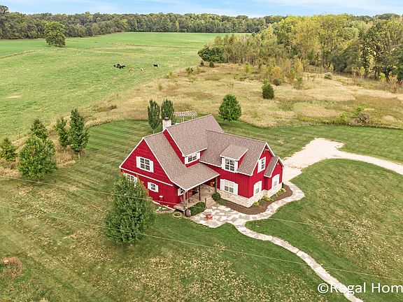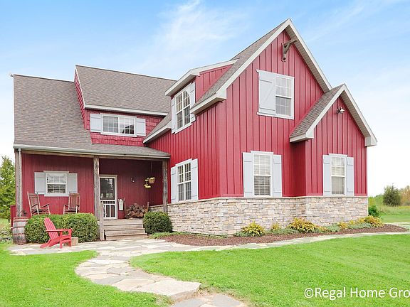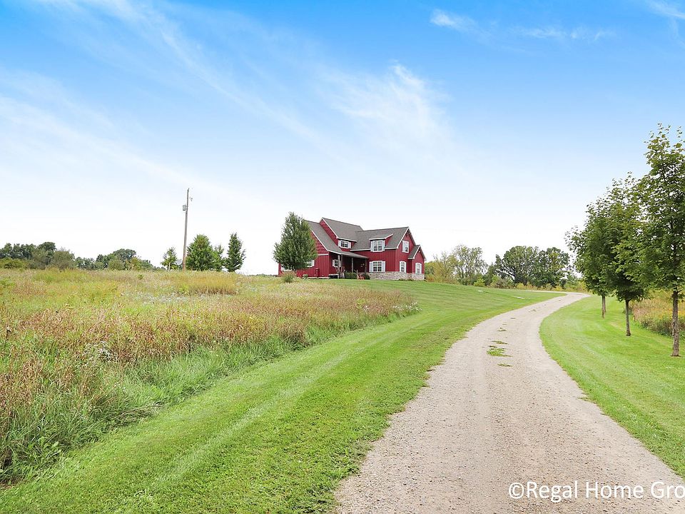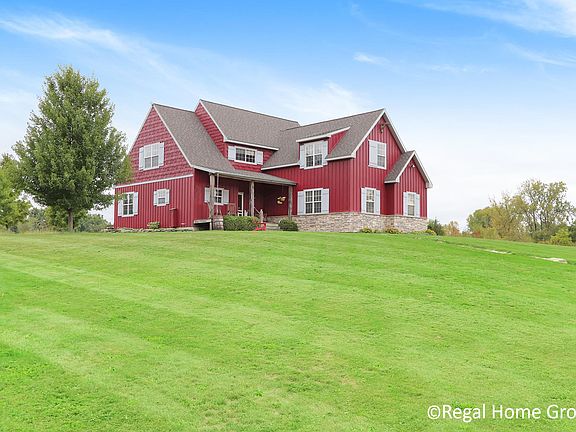 Wake refreshed on a knoll overlooking 6.81 pastoral acres in the Lowell school district. Detailed in reclaimed barn wood, antique brick, and period fixtures, this two-story home embraces you daily with the custom craftsmanship of luxury vacation cabins. Mortise-and-tenon beams span a cathedral ceiling 17' above the great room's central fireplace. A master suite, laundry/mudroom, and breezy dining area, share the first floor with a roomy farmhouse kitchen awaiting the next batch of cookies. Three more bedrooms (and a two-shower bath) adjoin an upstairs loft. The biggest surprise awaits downstairs: a 1920s-era theater that seats two dozen guests before a nine-foot screen -- with wet bar, high-def projector, and premium audio! The ease of well-appointed country living calls!